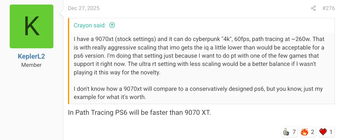 Dinge wie Pathtracing ist selbst am PC nur Nische und Beta. Bei normalen 1-2 RT Effekten kommt eine PS5 Pro schon gut mit und die Standard PS5 wenn es hauseigenen Sonyproduktionen sind.